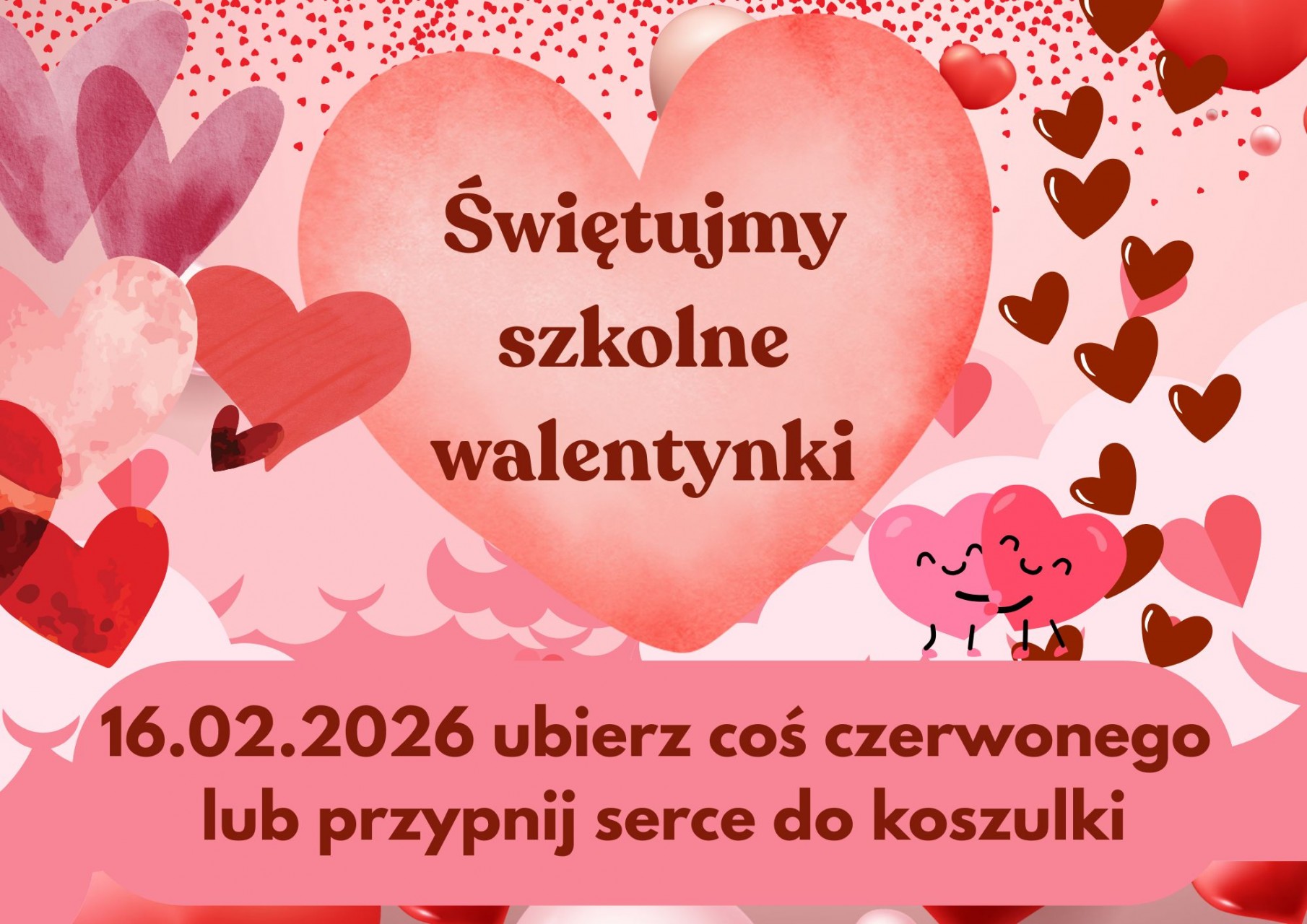 Zapraszamy wszystkich uczniów oraz pracowników do włączenia się w świętowanie – wystarczy ubrać coś czerwonego ❤️ lub przypiąć serduszko do koszulki.