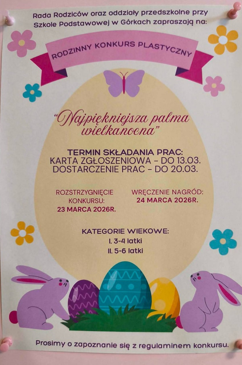 Dla dzieci z oddziałów przedszkolnych ogłaszamy rodzinny konkurs na Palmę Wielkanocną. To doskonała okazja do wspólnego, rodzinnego kultywowania tradycji wielkanocnych.